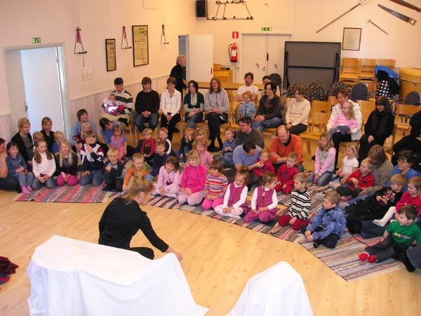 Bilder från Teater Tummelitens uppskattade föreställning av "Guldlock och de tre björnarna" i Bygdegården den 25 mars 2006. (Foto: Gunnar Bergsten)