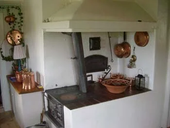Fullt bruksduglig vedspis och bakugn. Det gamla torpet är pietetsfullt restaurerat, samtidigt som det genom tillbyggda delar fungerar som en modern bostad.