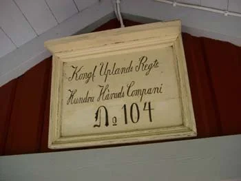 En kopia av den gamla rotetavlan sitter över dörren (originalet finns på krigsarkivet).